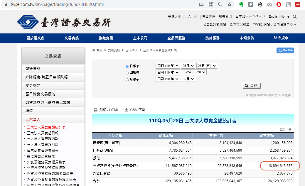 台股的大盤籌碼,主要是以 證交所 為主,可以參考下列連結