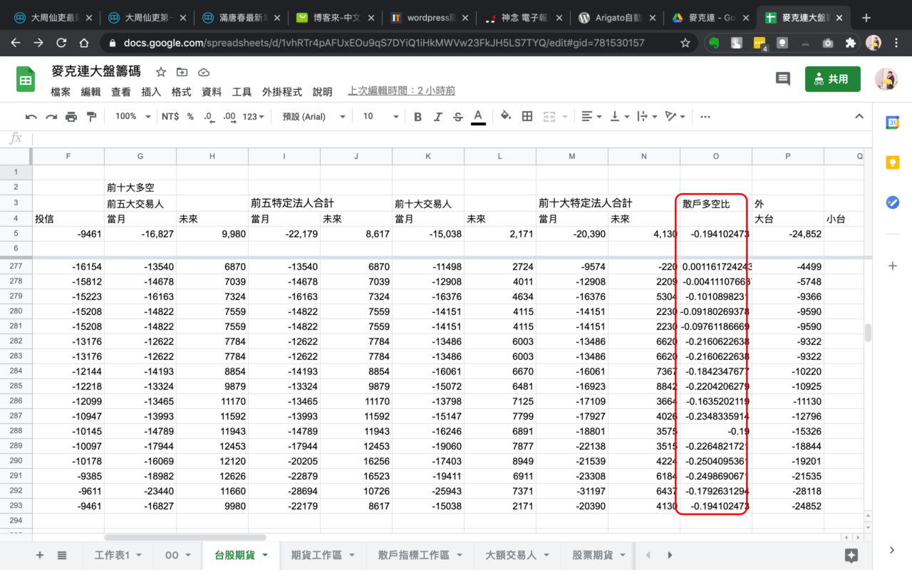 散戶多空比,散戶可看作是反指標,越空,表示長得越厲害,機率大增,等到要正式轉空,就是散戶多空比要轉正。