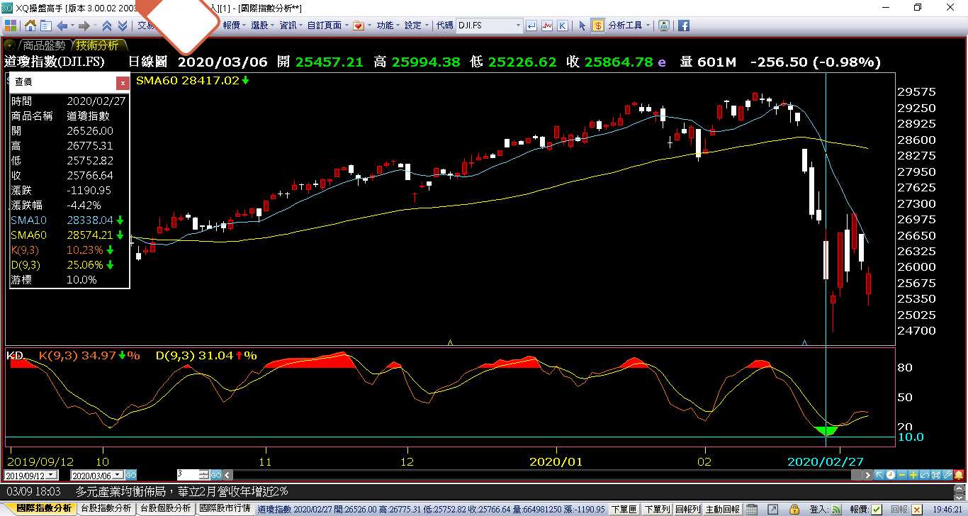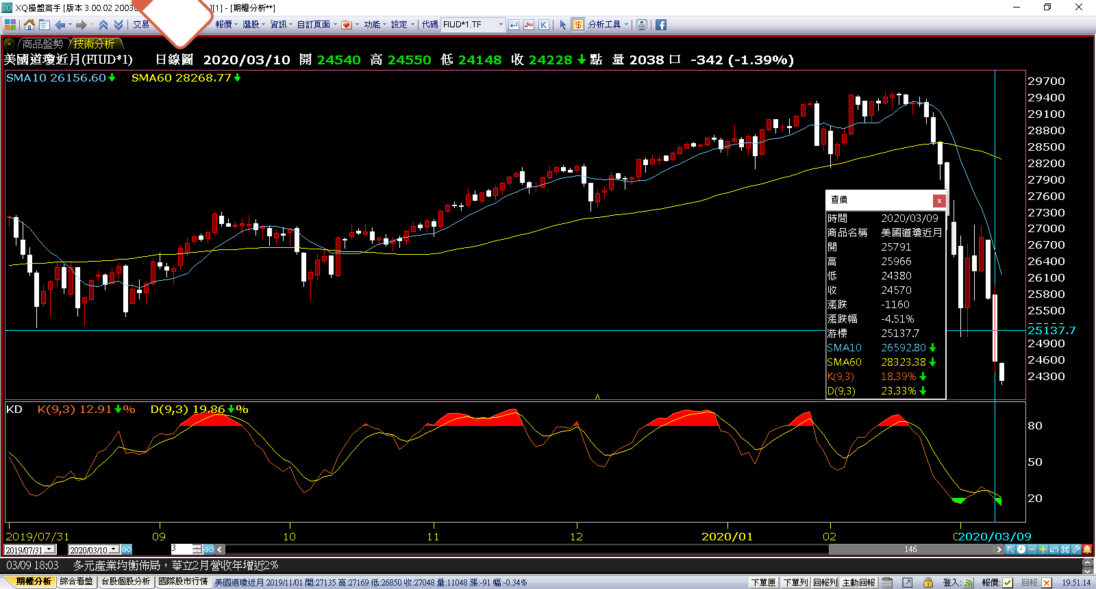 結果,美國道瓊電子盤,盤中就出現-5%,到達熔斷標準,中間休息15分鐘再開盤,如果你有在做電子盤部位的人,最好找一家券商,可以設長效到價,一到價格,自動幫你停損,不然期貨有時大波動,一下就讓你虧損三年的獲利。
