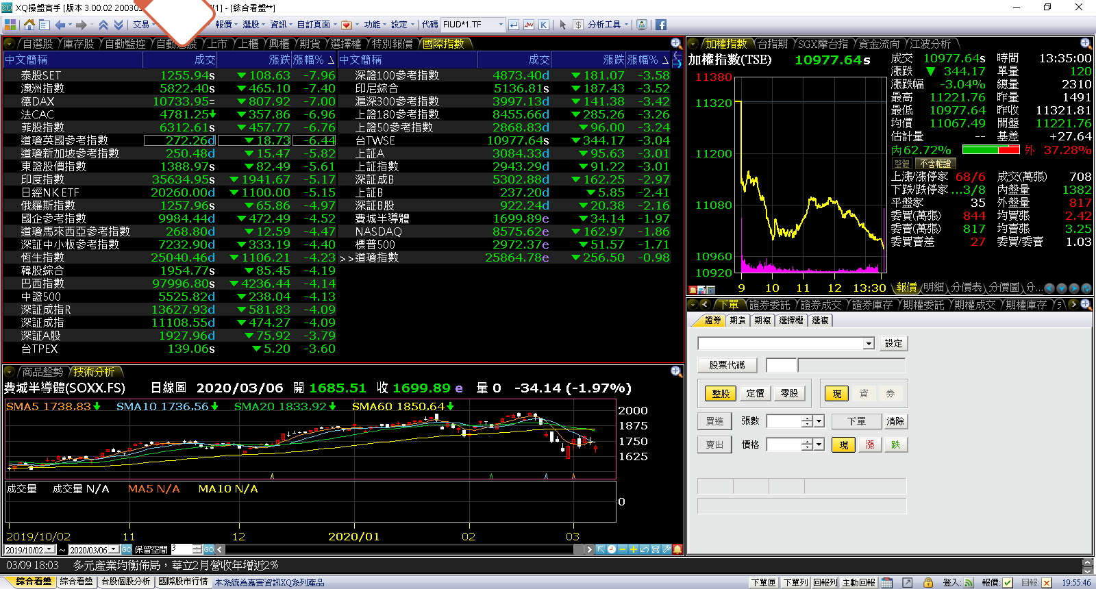 台灣加權指數大跌3.04%,白天時段,還不算很凶,有內資跟政府在做多,真的不容易跌下去。