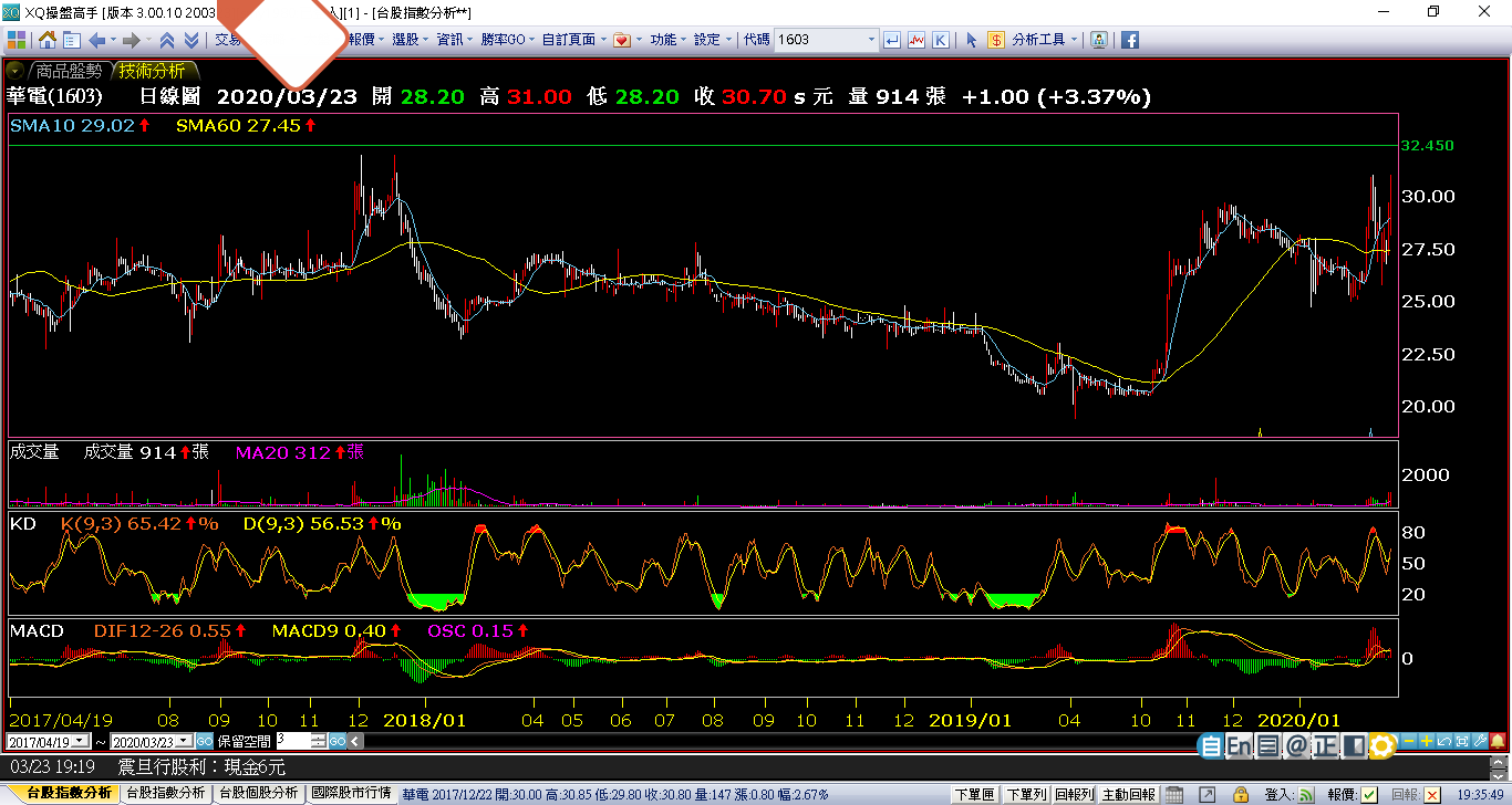 創新高股票1603華電,建議是採順勢交易法,過歷史新高,再買,買股票前,先設好停損點,不能虧損資金3%