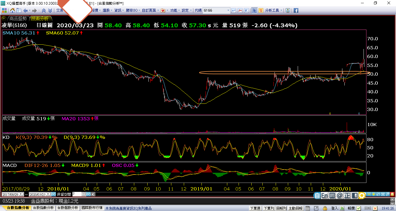 上週也是類似情形,6166凌華,突破失敗,但這次有守住60MA,靠近可以小部位,停損設前低約40-39左右