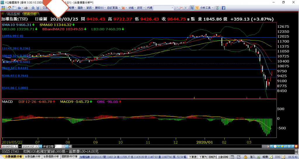 大盤記錄,前面關關黑K,多頭之路不好過,建議是到達壓力線前,先出一點再看看,技術分析來說,這是在走反彈趨勢,能不能重回多頭目前還不知道,MACD有明顯縮柱,就適合把今天低點當作移動停利的出場點。