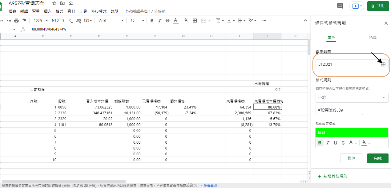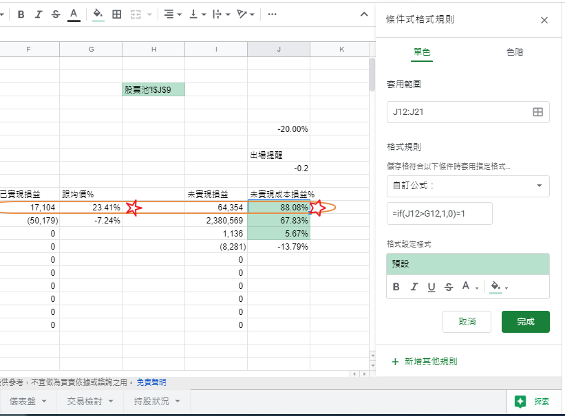 Google sheet試算表,條件式格式教學,圖表整理推薦強大工具,理財投資新手必學