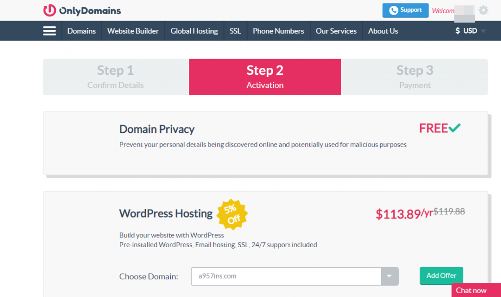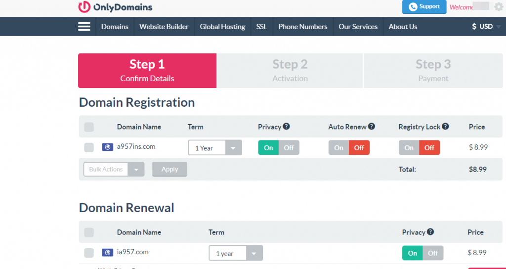 A957煉金保險,接著改變成a957ins.com,首年跟續年目前價格是一樣,選onlydomain,是因為有免費贈送隱私鎖,可以不讓看到你註冊所在地,在一些網名註冊商上,這個是要收費的。
